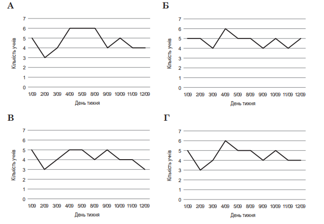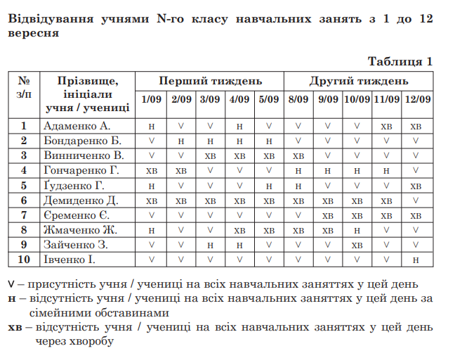 Учителька роздала учням картки із завданнями й запропонувала інструкцію роботи з ними, а саме: за її сигналом розпочати рухатися по класу в помірному темпі, зустрівши однокласника / однокласницю утворити пару, «приклеїтися» плечима одне до одного й заповнити один рядок таблиці з картки, виконавши завдання. Потім утворити пару з іншим учнем / ученицею і повторити дії. Так треба робити доти, доки не буде заповнено всю таблицю на картці. Після чого сісти на своє місце й перевірити правильність виконання завдання.