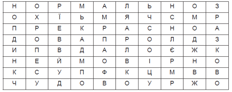 Відшукай у таблиці та обведи слова, якими ти оцінюєш свою роботу на уроці.